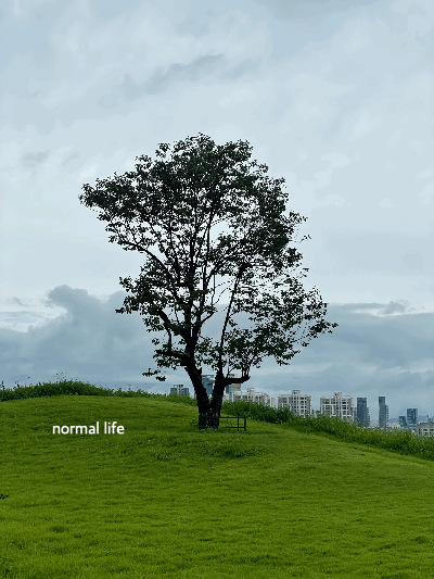 산언덕에 홀로 나무한그루가 서있는데 이곳이 이도커피의 포토스팟이다. 언덕 너머로는 아파트뷰가 있어 조금 아쉽지만 햇살 좋은 날이나 노을 지는 오후에 찍으면 멋진 한컷이 나올 것 같다.