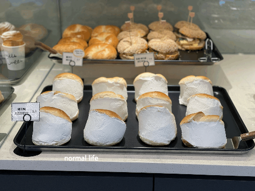 1호점 ,2호 점보다 규모가 커서 그런지 베이커리, 디저트류도 다양했다. 이도커피 1호점 초기에는 디저트류는 스콘과 티라미수 정도만 있었는데 최근에는 디저트와 간단한 식사로도 가능한 크로와상 샌드위치와 잠봉뵈르등 메뉴가 다양했다. 요즘 핫한 베이커리류인 소금빵과 베이글도 있는데, 대파베이글과 잠봉 베이글 샌드위치가 내 마음속 한 표이다.