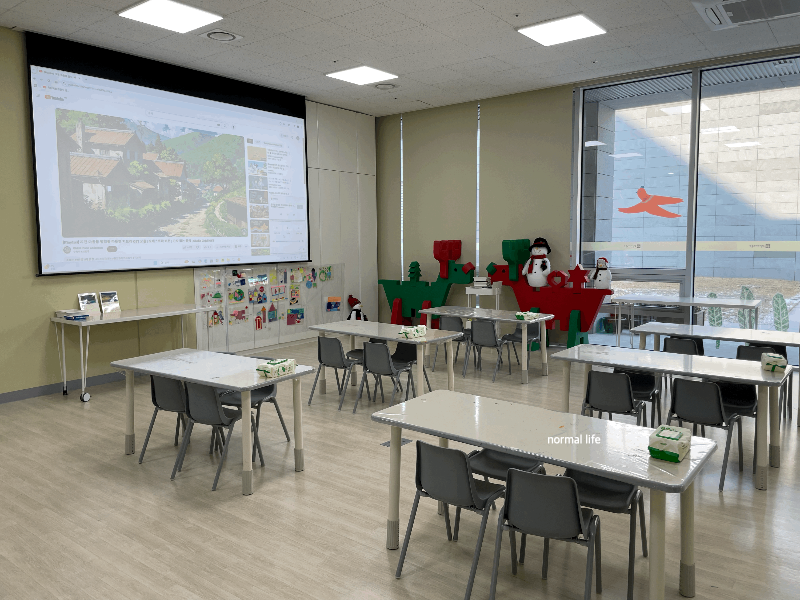 교육실 안에는 외투를 걸어 둘 수 있는 행거가 준비되어 있었다. 우리 가족은 1층 물품보관소에 외투와 간단한 짐을 보관해 두었는 데를 교육실의 행거도 이용이 가능하니 참고하면 좋을듯하다.