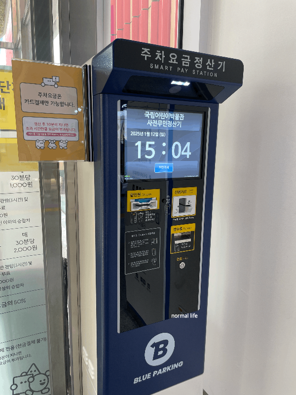 국립어린이박물관은 건물 내 지하 주차장과 야외주차장 이용이 가능한데 건물 내 주차장은 협소하여 야외 주차장 이용을 추천하고 싶다.