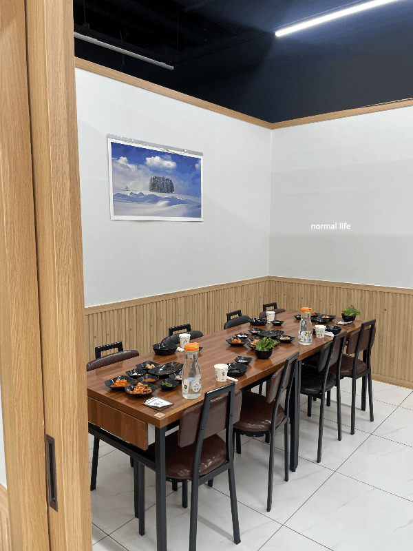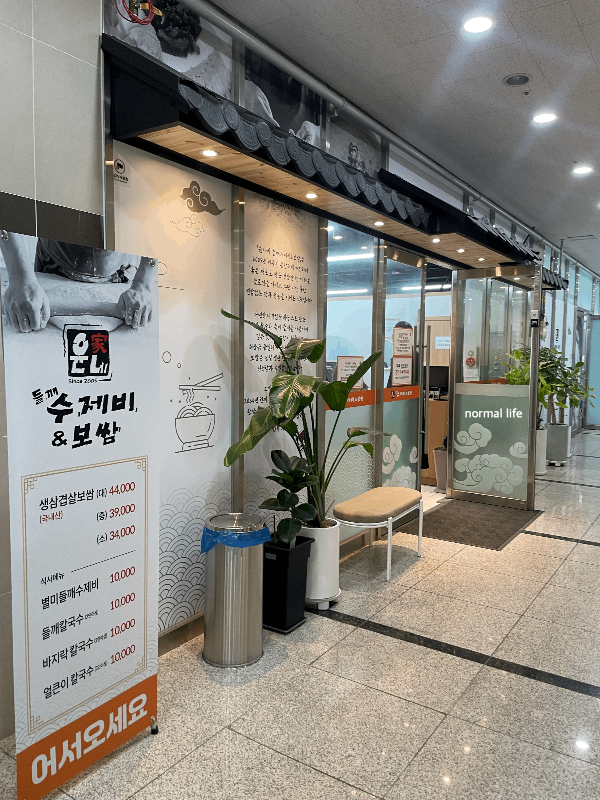 단체모임을 할 수 있는 프라이빗한 공간이 따로 마련되어 있는 윤가네들깨수제비&보쌈이다. 우리는 평일 식사시간인 11시 30분쯤 방문하였는데 근처 직장인들로 금세 식당 안은 꽉 찼다. 평일 점심시간이나 주말 방문 시에는 대기시간이 있으니 식사시간을 조금 피해서 방문하는 것을 추천하고 싶다.