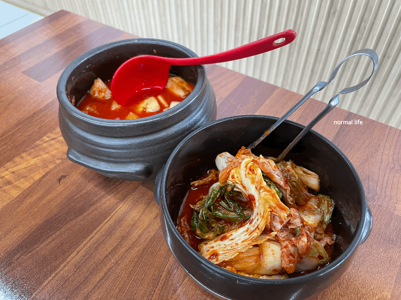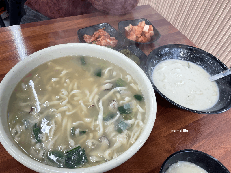 수제비와 칼국수의 짝꿍인 갓 버무린 겉절이와 깍두기가 기본찬으로 나온다. 마음껏 맛볼 수 있도록 넉넉히 가져다주시며 먹고 싶은 만큼 덜어 맛볼 수 있다.