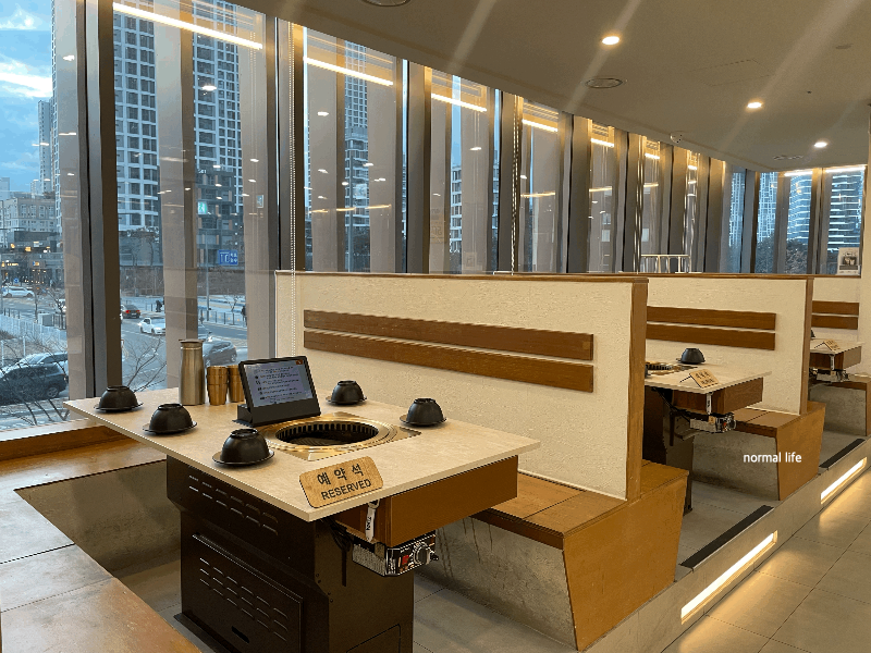 트렌디하면서 캐주얼한 한돈 숯불구이를 맛볼 수 있도록 꾸며진 정숙성의 내부이다. 전면이 통창으로 식사하는 내내 세종시의 모습을 바라볼 수 있었다. 숯불 돼지고깃집이지만 밝고 캐주얼한 인테리어가 매력적이고 가족 외식이나 모임 하기에도 좋은 정숙성 세종점이다.