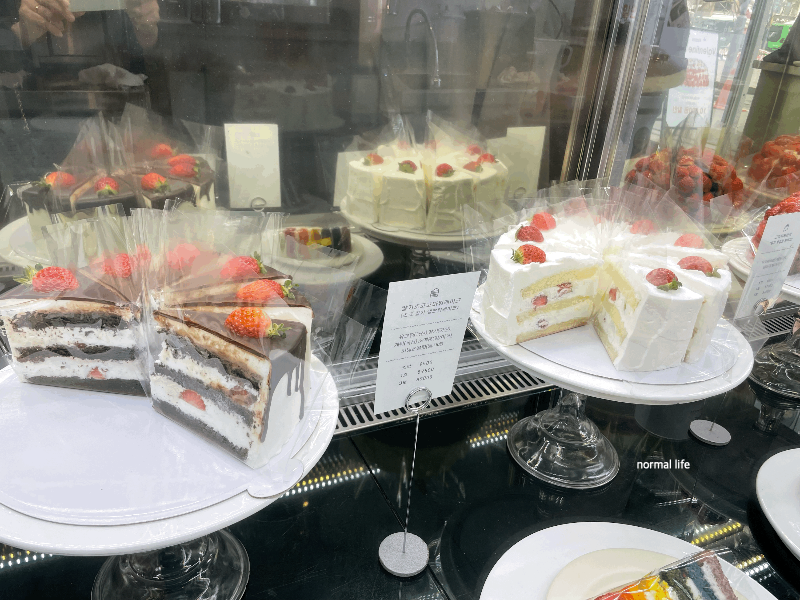 제철 과일인 딸기 시즌을 맞이해 고마워케이크 쇼케이스 안 딸기케이크들이 눈길을 끌었다. 달콤한 딸기로 뒤덮인 #너무 고마워케이크 1조각 11,800원 1호 69,500원 3호 93,000원이다. 100% 우유 생크림과 국내산 계란과 제철 딸기를 사용해 당일 매장에서 달콤한 케이크를 만들고 있다. 너무 고마워케이크 겉면과 안쪽에도 새콤달콤한 딸기가 가득 들어있어 봄향기 가득한 달콤한 디저트를 즐길 수 있었다.