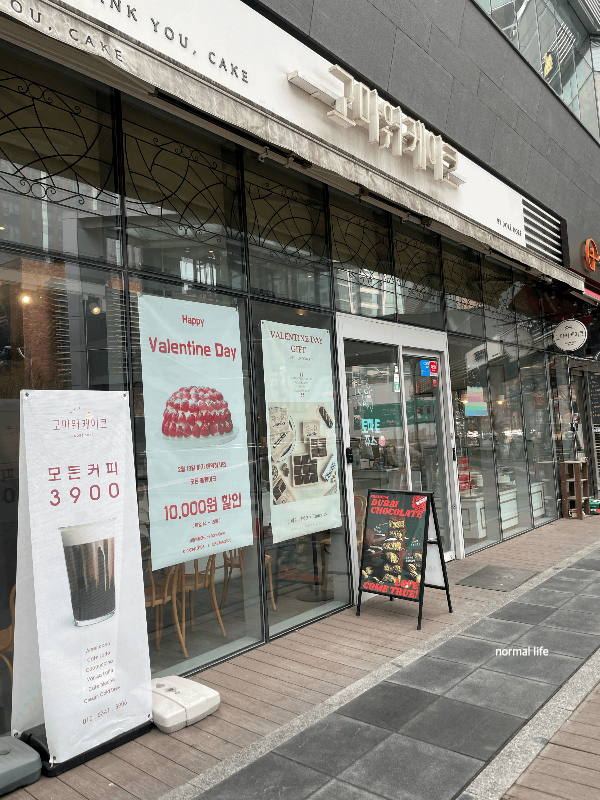 롯데시티호텔 구로 1층 야외광장에 위치하여 구로디지털단지 직장인들에게 사랑받는 고마워케이크이다. 매일 10시 30분부터 늦은 시간인 22시 30까지 영업을하며 모든커피를 3,900원에 즐길 수 있는 이벤트를 진행중이다.