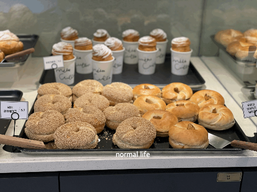 1호점 ,2호 점보다 규모가 커서 그런지 베이커리, 디저트류도 다양했다. 이도커피 1호점 초기에는 디저트류는 스콘과 티라미수 정도만 있었는데 최근에는 디저트와 간단한 식사로도 가능한 크로와상 샌드위치와 잠봉뵈르등 메뉴가 다양했다. 요즘 핫한 베이커리류인 소금빵과 베이글도 있는데, 대파베이글과 잠봉 베이글 샌드위치가 내 마음속 한 표이다.