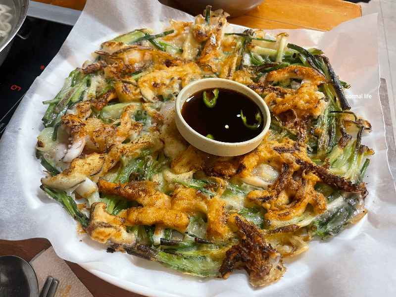 큼직한 새우와 오징어, 파가 듬뿍 들어간 해물파전이다. 아낌없이 들어간 큼직큼직한 해산물과 바삭함까지 맛볼 수 있었다. 덕분에 막걸리를 추가 주문하여 함께 맛보았다.