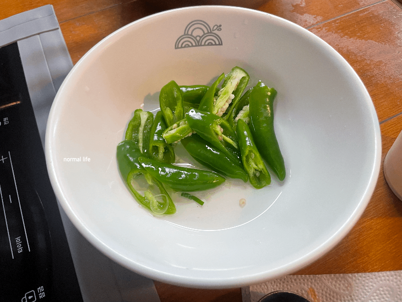 물총탕에는 마늘, 파, 고추가 올려져 있었는데 6세 딸아이와 함께 맛보기 위해서 재빨리 매운 고추를 덜어냈다. 아이와 함께 방문했을 때 물총탕 주문 시 고추는 따로 부탁드리는 걸 추천하고 싶다.