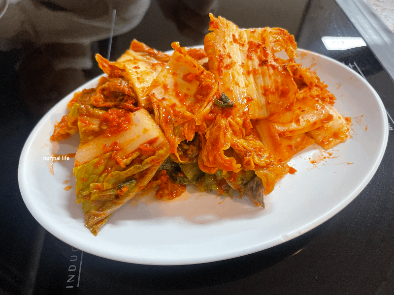 매일 아침마다 담그는 동동칼국수 매운맛 김치이다. 맵찔이인 나에게는 조금 매웠지만 칼칼한 매콤함이 매력적이다. 뜨끈한 칼국수와 입맛을 돋우는 김치로 제격이었다.