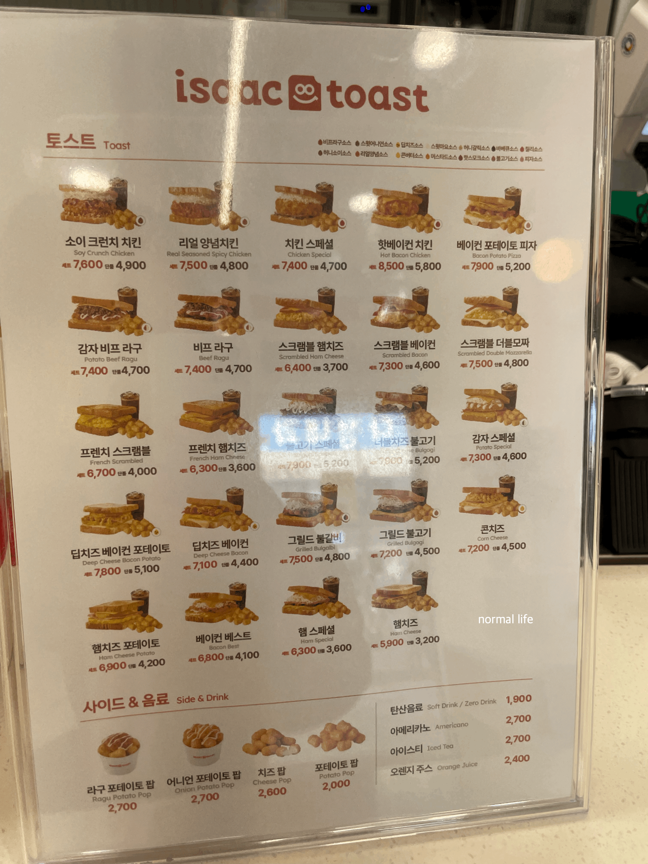 2. 이삭토스트 세종다정점 메뉴와 가격