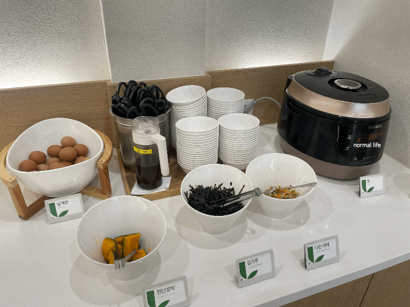 샤브샤브 마무리 볶음밥을 즐길 수 있도록 날계란, 김가루, 단호박, 다진야채, 참기름, 밥이 준비되어 있어 셀프로 볶음밥을 만들어 맛볼 수 있다. 냄비에 남은 재료를 덜어내고 밥과 육수, 재료들을 넣고 끓어주면 맛있는 샤브샤브 죽을 맛볼 수 있다.