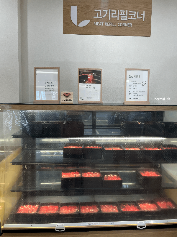 고기리필코너에 호주산 소고기가 준비되어 있어 양껏 마음껏 즐길 수 있었다. 우리가 방문했을 때에는 호주산 소고기였으며 뉴질랜드와 덴마크산, 호주산 소고기를 사용하고 있다.