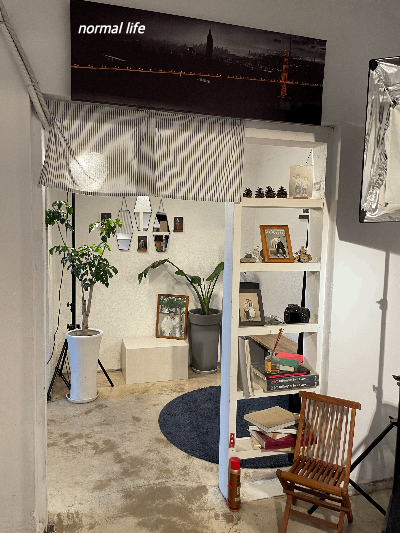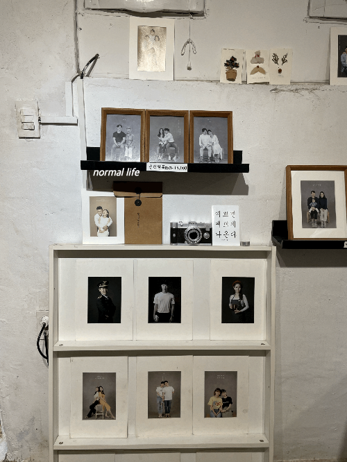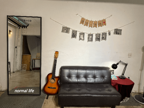 스튜디오 한편에는 대기하거나 완성된 사진을 기다리면서 자유롭게 사진을 찍을 수있는 포토존이 있다. 빈티지한 느낌의 공간과 아기자기한 소품들이 감성컷을 찍을수 있다.