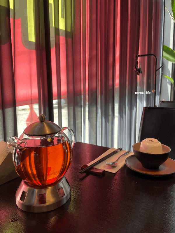 식사 내내 따뜻하게 마실 수 있도록 티팟에 차가 제공된다. 식사 전 따뜻하게 몸을 녹일 수도 있고 기름진 중국음식을 깔끔하게 마무리할 수 있다.