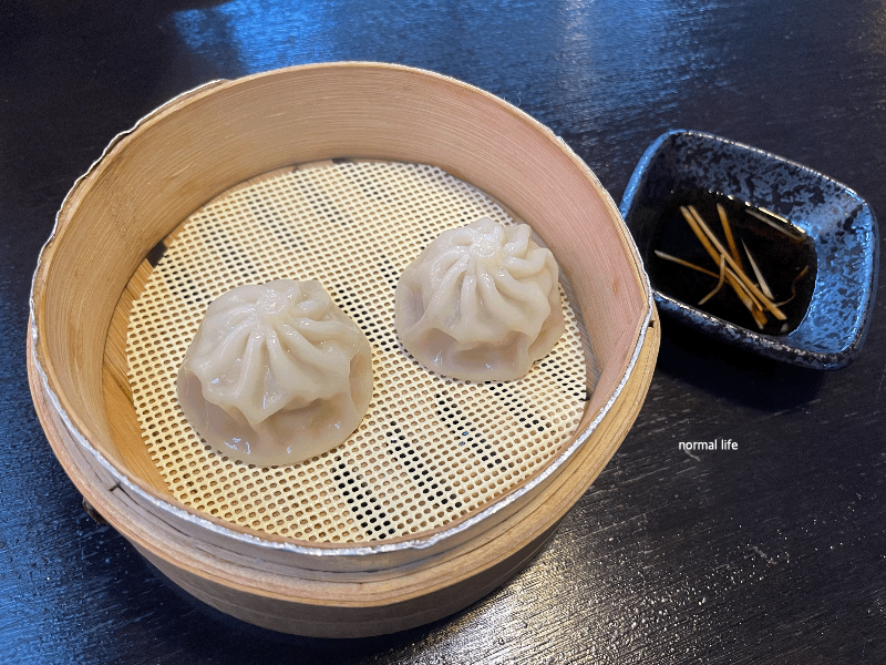 애피타이저로 제공되는 고기 육즙 가득한 샤롱바오이다. 샤롱바오 맛있게 먹는 법은 1 샤롱바오를 숟가락에 얹는다. 2 생강을 샤롱바오에 얹는다. 3 젓가락으로 만두피를 살짝 찢어 육즙을 마신다. 4 샤롱바오를 한입에 넣어 맛본다.
