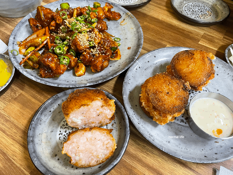 김희진씨가 매일 아침 직접 새우를 다져 만드는 김희진 수제멘보샤 3조각을 주문해 보았다. 얇은 빵사이에 다진 새우를 가득 넣어 만든 한정판매 메뉴이다. 갓 튀겨져 나온 새우살 가득한 멘보샤를 수제 갈릭소스와 함께 맛보길 추천하고 싶다.