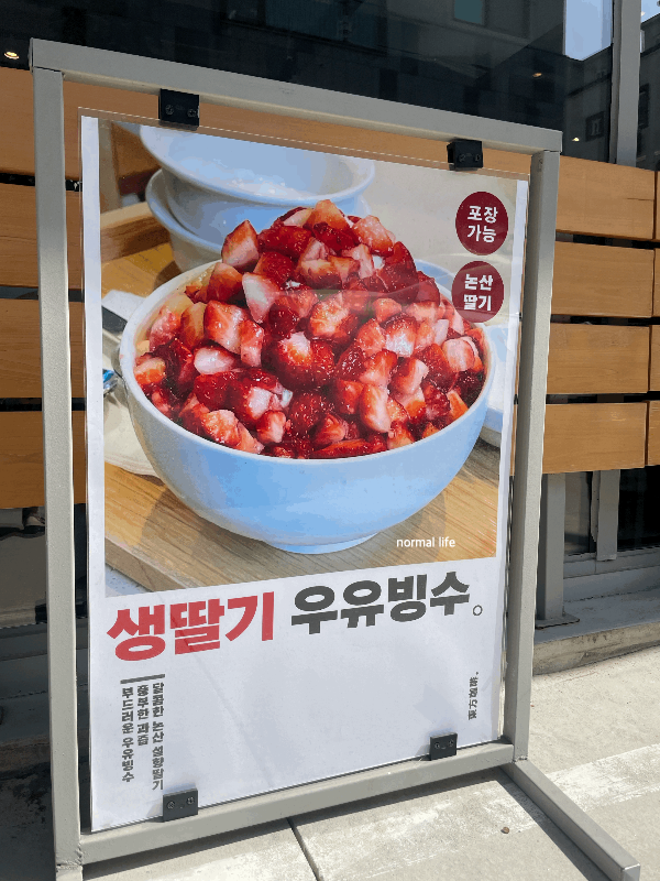 동방커피 원신흥점에서만 맛볼 수 있는 #생딸기 찐 우유 빙수 19,000원이다. 100% 우유로 만든 빙수로 계절에 따라 딸기, 망고, 무화과, 고구마치즈, 팥빙수를 맛볼 수 있다. 내가 방문한 3월에는 신선하고 당도 높은 논산 딸기와 매장에서 직접 만든 딸기잼으로 만든 생딸기 찐 우유빙수를 맛볼 수 있었다. 2인이 즐길 수 있는 푸짐한 양으로 빙수 테이크아웃 시 포장비 1,000원 추가된다.