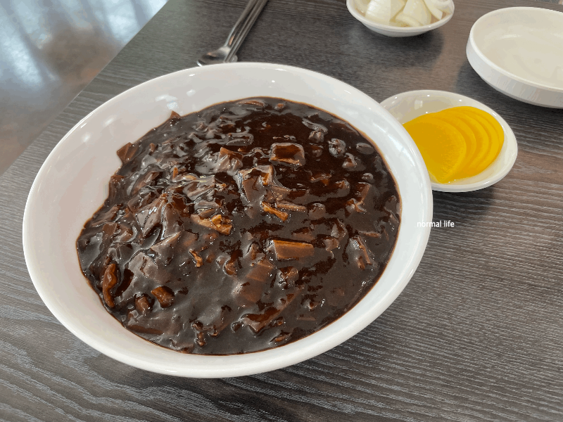 짜장면 곱빼기를 주문하였다. 평소 맛보던 짜장면 면발보다는 조금 더 굵은 면발이었고 부드럽고 고소한 면발이 매력적이었다. 짜장소스는 단맛과 짠맛이 덜한 자극적이지 않은 고소한 맛이 특징인 옛날스타일 짜장면이었다.