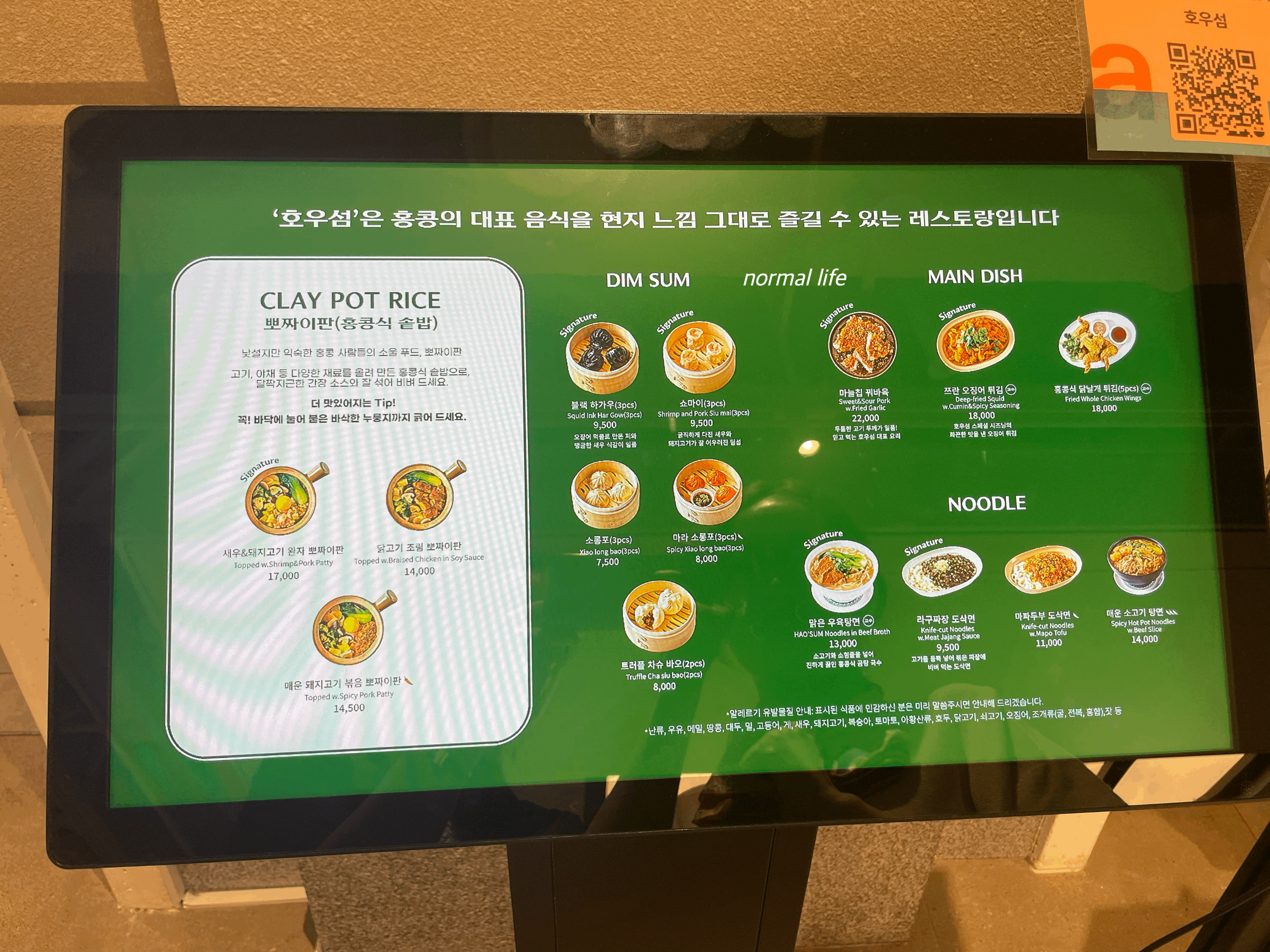 2. 호우섬 메뉴와 가격