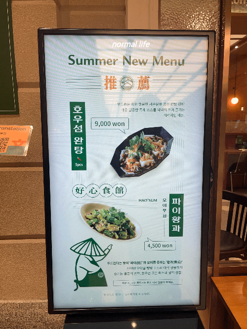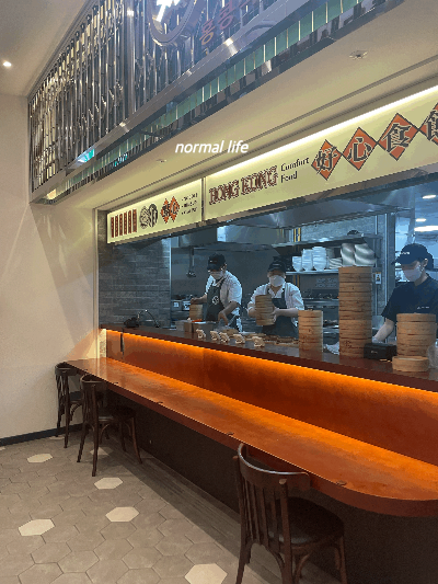 딤섬 하나하나 빚어내는 모습을 볼 수 있는 오픈 키친과 홍콩의 합석문화를 경험할 수 있는 바테이블이 눈에 띈다. 홍콩의 #차찬팅을 그대로 구현한듯한 인테리어로 마치 홍콩에 있는듯한 이국적인 느낌이었다. 홍콩 음식점들은 벽과 바닥을 타일로 마감하는 것을 좋아하는데 호우섬은 홍콩의 레트로한 느낌까지 잘 구현해 홍콩의 정취를 느낄 수 있다.