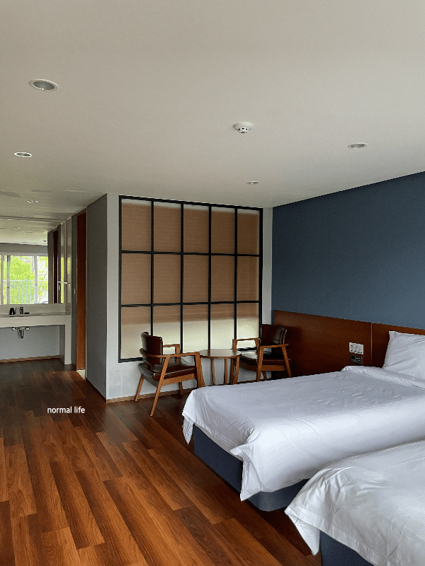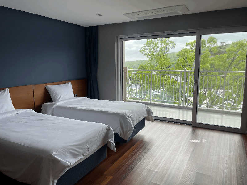 성인 4명과 6세 아이 2명이 1박 2일 동안 묵기 위해 51평형을 예약하였다. 금요일 체크인 토요일 체크아웃으로 아고다에서 349,513원에 예약을 하였다. 51평형은 기준인원 6명이며 최대 8인까지 머무를 수 있고 침실 2, 거실 1, 주방 1, 화장실 2개로 구성되어 있어 두 가족이 머무르기에 적합하였다.