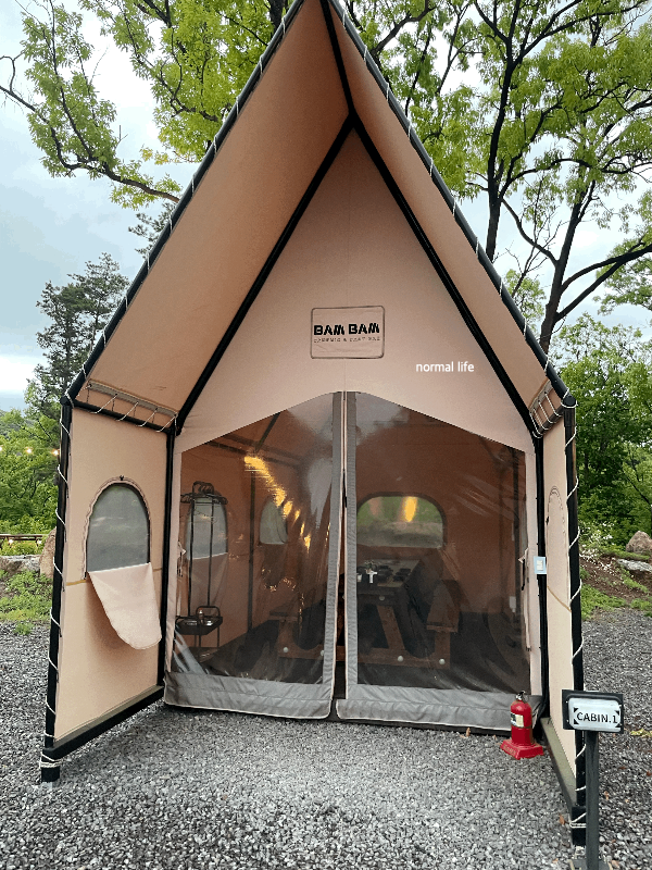 벨포레리조트의 푸르른 자연에 둘러싸인 텐트에서 바베큐를 즐길 수 있는 밤밤테이블을 방문해 보았다. 안락한 개인 텐트, 캠프 파이어, 먹거리, 불판, 식기, 에어컨, 담요 등 캠핑 바베큐에 필요한 모든 것들이 준비되어 있어 사전예약만 하고 방문하면 된다. 모든 외부음식과 주류는 반입 금지이다. 벨포레 언덕 위에 위치하여 자연의 정취를 감상하며 아이들이 맘껏 뛰어놀 수 있는 캠핑감성 가득한 밤밤테이블을 추천하고 싶다.