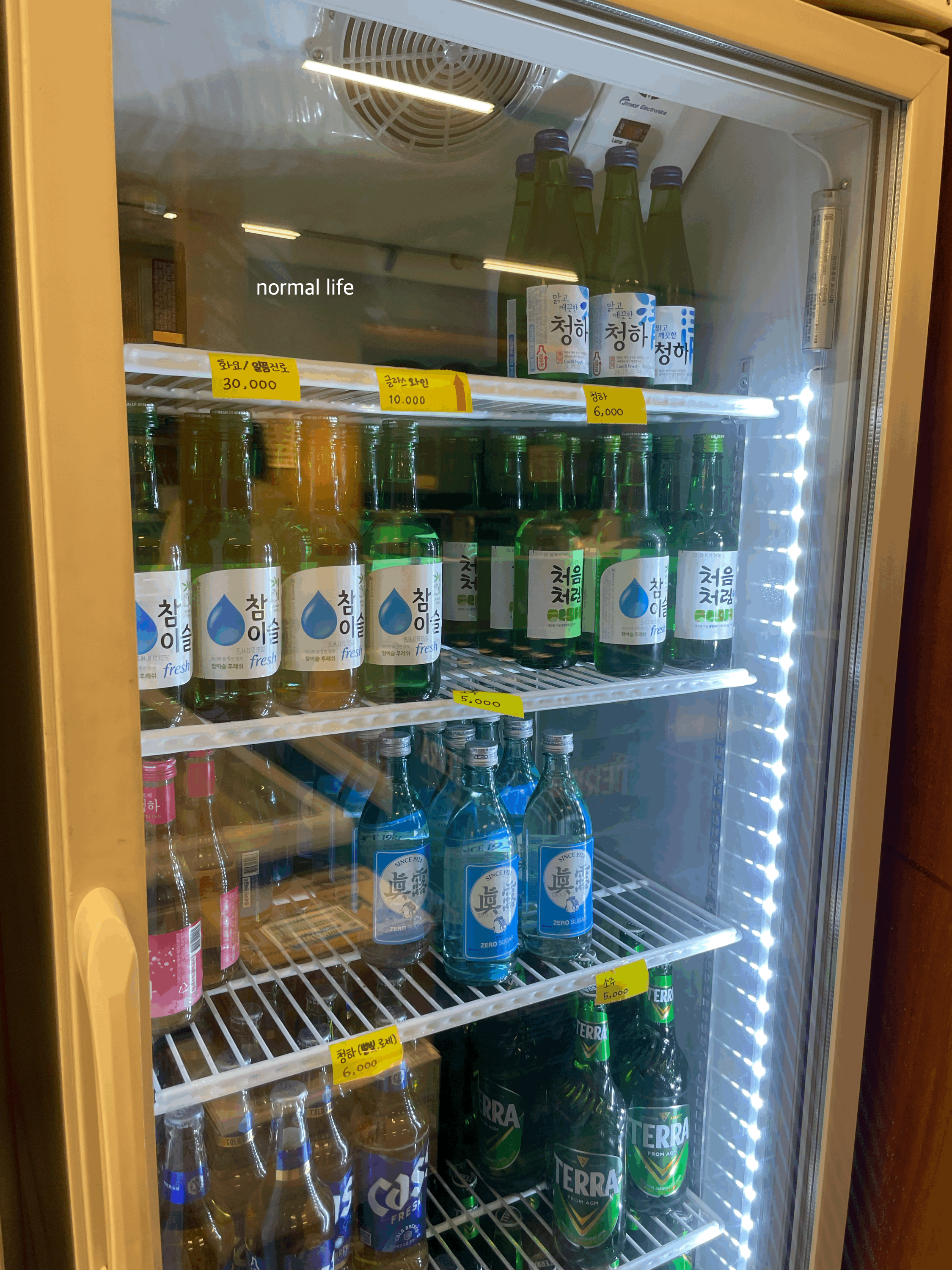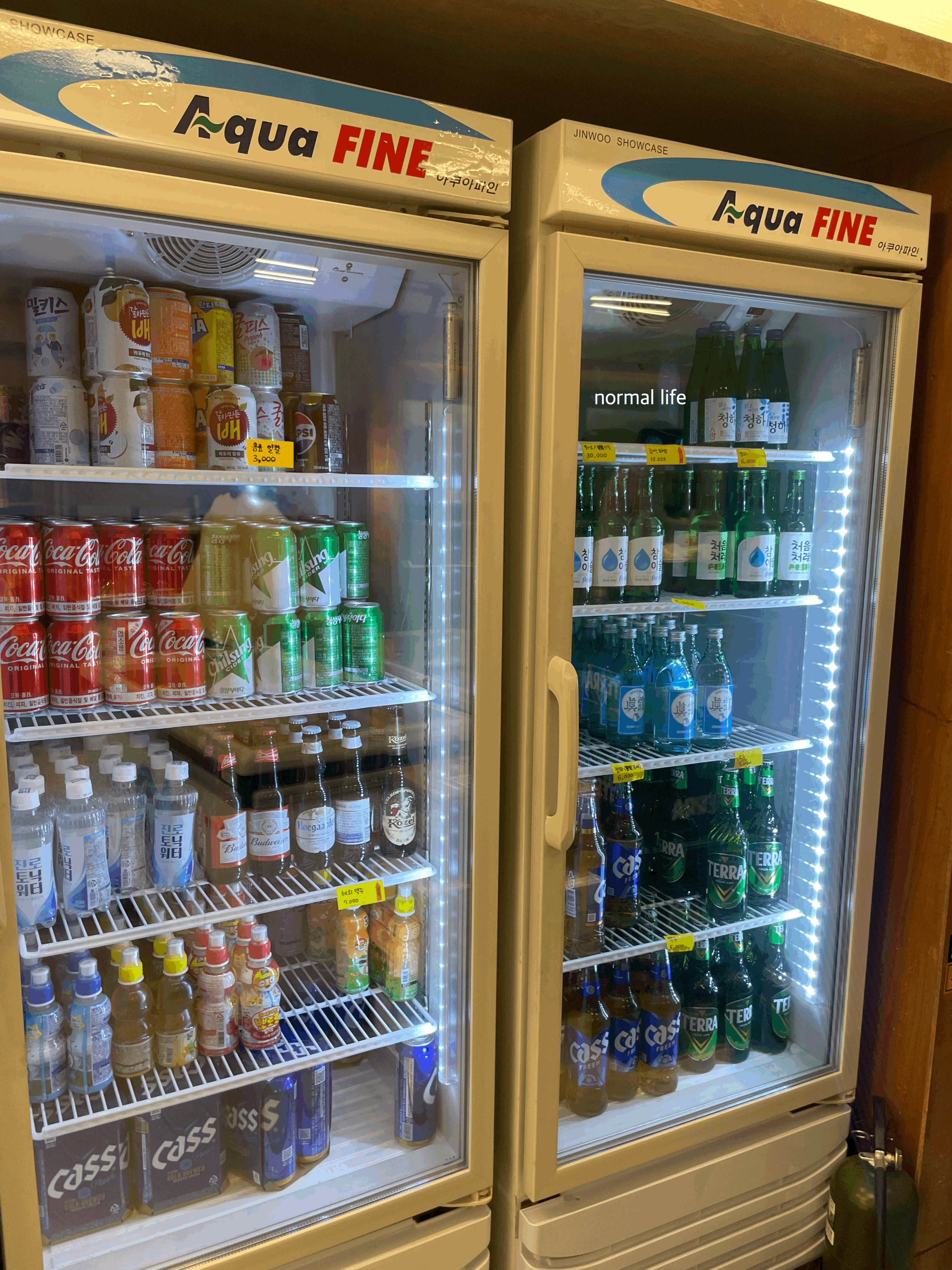 탄산음료와 어린이 음료, 각종 주류도 판매 중이다. 캔음료와 어린이 음료 3,000원 해외 맥주 7,000원 화요 30,000원 글라스와인 10,000원 청하 6,000원 소주 5,000원 맥주 5,000원이다.