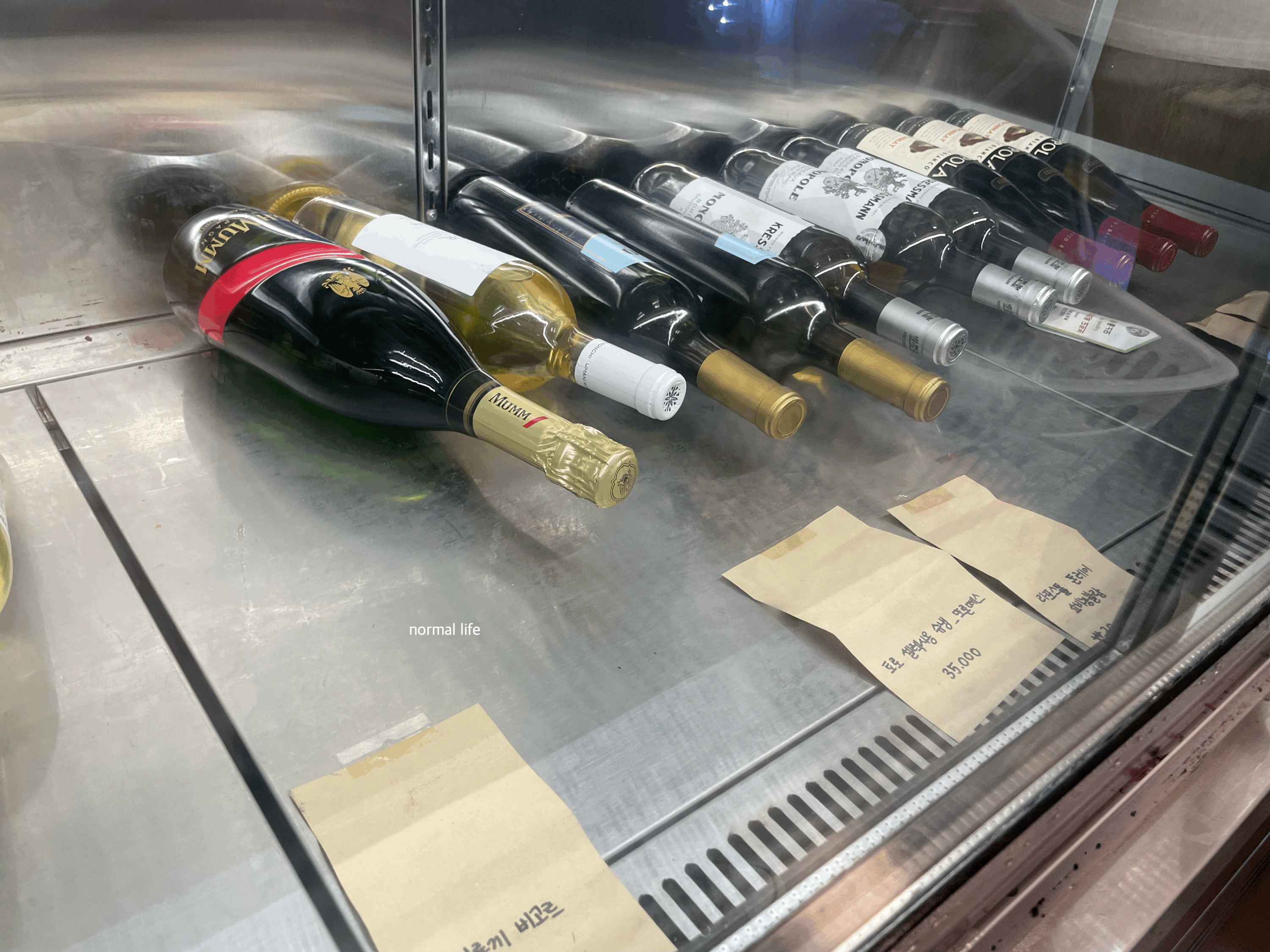 밤밤테이블 매장에는 보틀와인이 준비되어 있다. 레드와인과 화이트와인, 샴페인류의 가격대는 35,000원부터 시작이다.