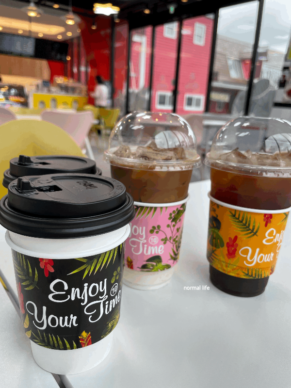 아메리카노 5,000원 카페라떼 5,500원 카페모카 6,000원 바닐라라떼 6,000원 녹차라떼 6,000원 초코라떼 6,000원 에이드 6,000원 아이스트 5,000원 오가닉티 4,500원 스팀우유 5,000 뽀로로음료 3,000원이다.