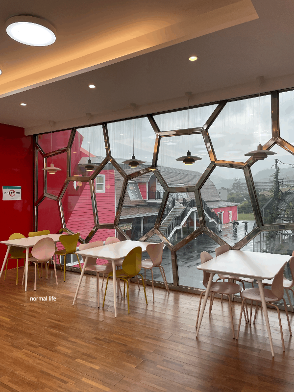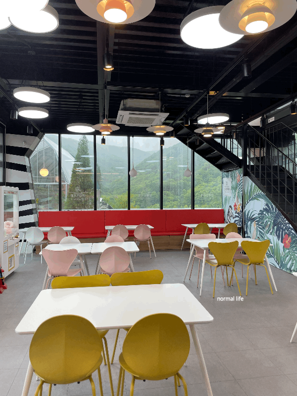 얼룩말카페의 1층 2층 어느 곳이든 벨포레목장과 푸르른 언덕이 내려다보였다. 벨포레리조트의 시그니처인 얼룩말카페를 꼭 한번 방문하길 추천하고 싶다.