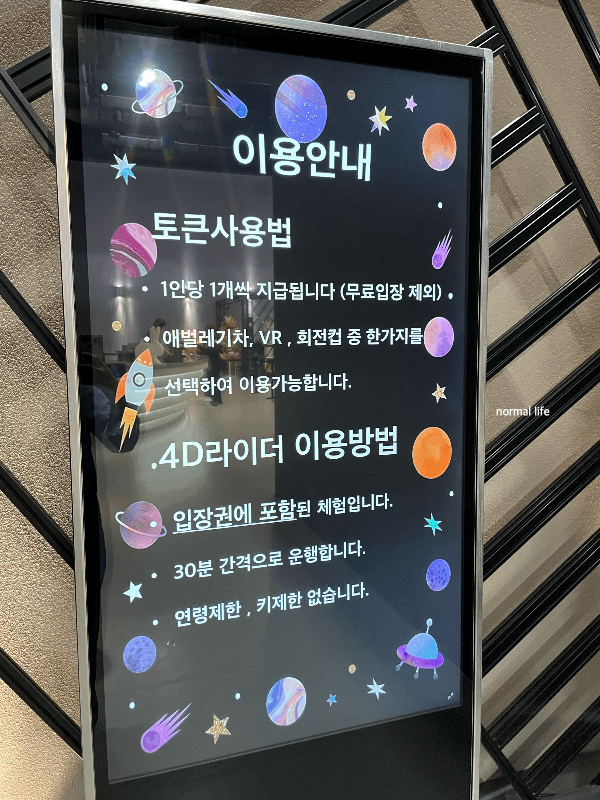 미디어아트 입장 시 1인 1 토근이 제공된다. 플레이존 VR체험, 애벌레기차, 회전컵 중 선택하여 토큰 1개로 이용이 가능하며 토큰 추가구매도 가능하다.