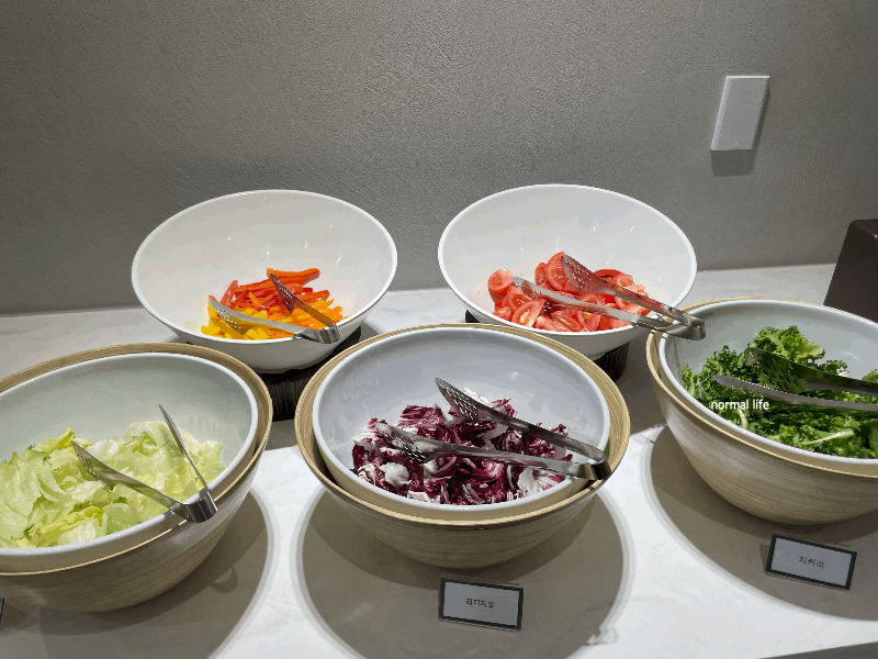 신선한 치커리, 라디치오, 양상추, 토마토, 3색 파프리카로 취향에 맞는 샐러드를 맛볼 수 있다.