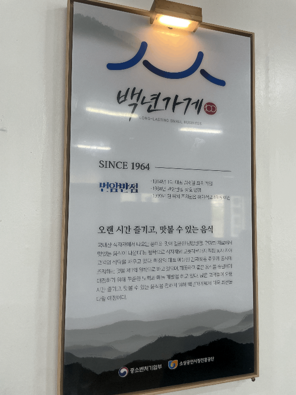 번암반점은 우수 소상공인에게만 자격이 주어지는 백년가게로 2023년 선정되었다.