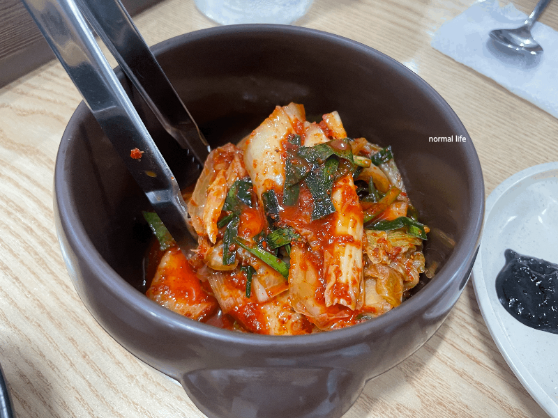 번암반점은 단무지, 양파, 춘장, 그리고 갓 버무려진 겉절이가 제공된다. 식당에서 제공되는 중국산 김치가 아닌 신선한 배추와 부추, 직접 농사지은 고춧가루를 사용한다고 한다. 엄마가 막 버무린 것 같은 빨간 겉절이 비주얼이 정겹다.