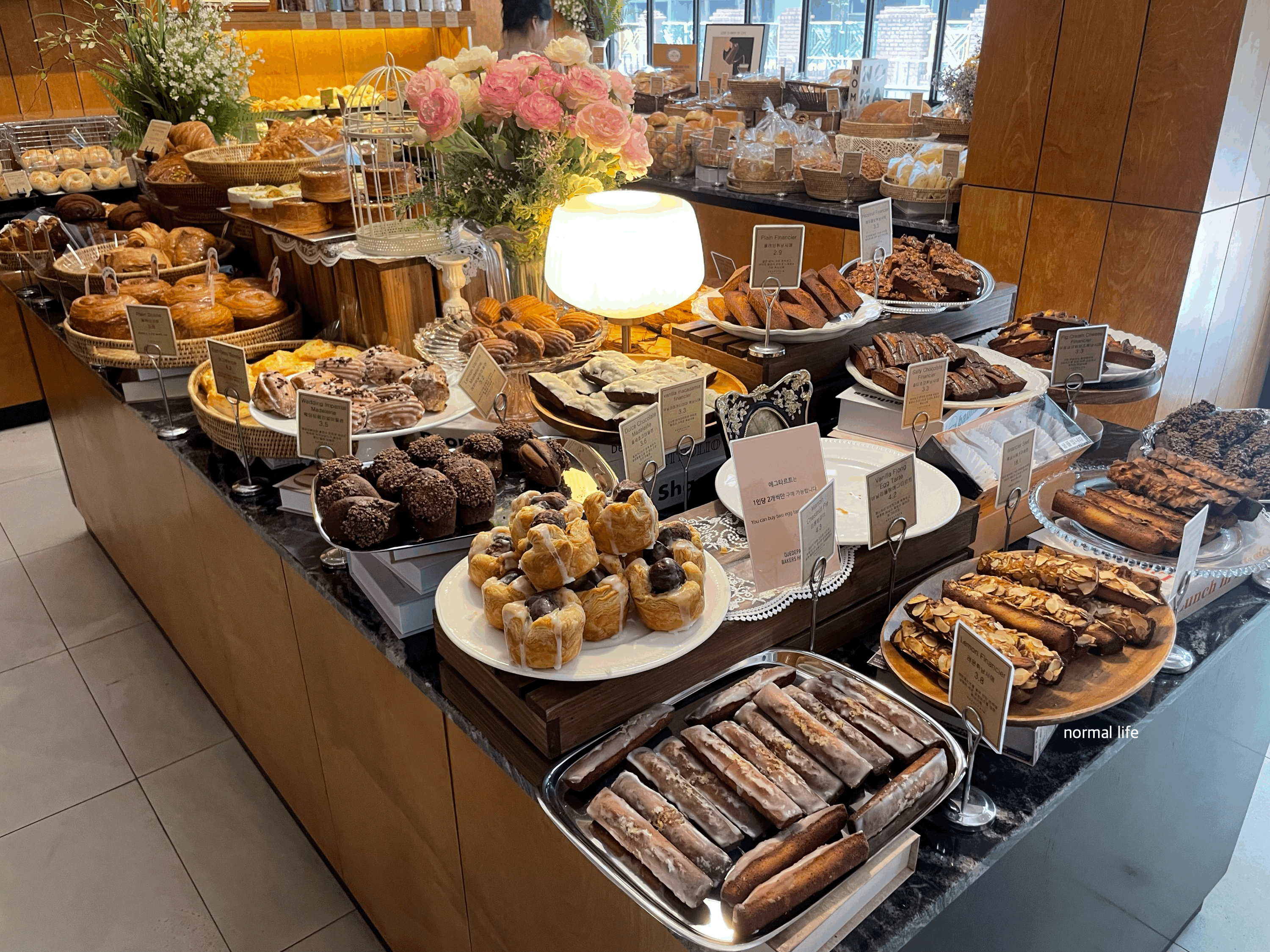 버터 풍미 진한 휘낭시에, 부드러운 마들렌, 부드러운 필링 가득한 에그타르트 등 맛있게 구워진 빵과 디저트들이 가득한 꾸드뱅 케이커스하우스이다.