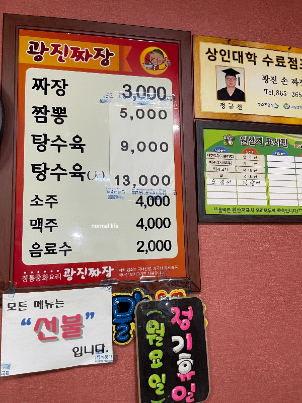 2. 광진손짜장 메뉴와 가격