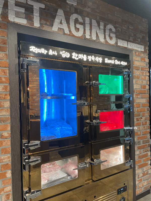 한마음정육식당은 대한민국 최초로 독일 숙성기술을 인증받아 저온에서 144시간 숙성과정을 거친 고기를 사용한다고 한다. 매장에서 직접 숙성된 고기를 손질하여 상에 제공하여 육즙 가득한 고기를 맛볼 수 있다.