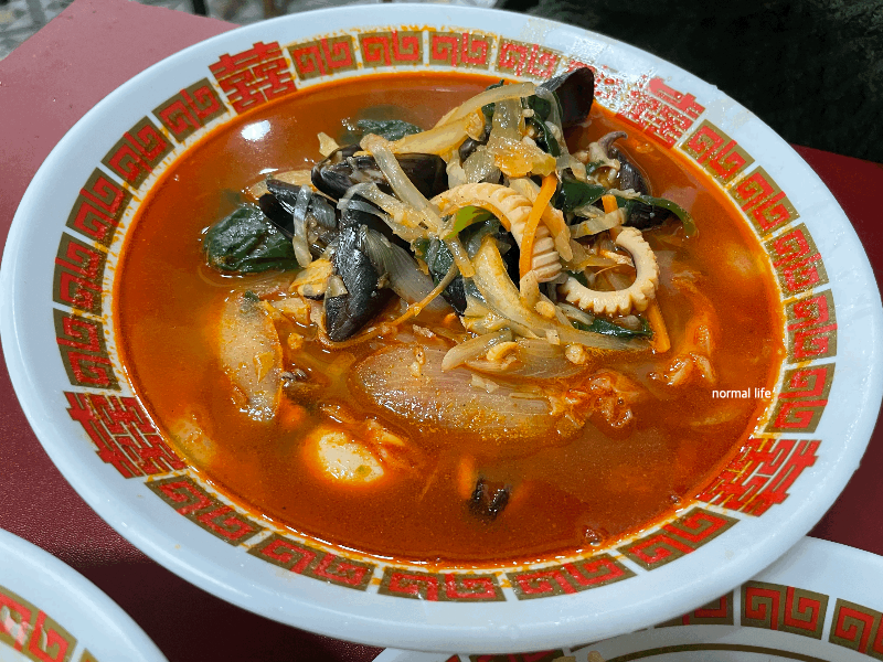 오징어, 바지락, 돼지고기, 그리고 각종 야채가 어루러진 깊고 진한맛이 특징인 신관짬뽕이다. 평소 매운 음식을 좋아하지 않지만 고기짬뽕의 깊고 진한 칼칼함은 좋아한다.