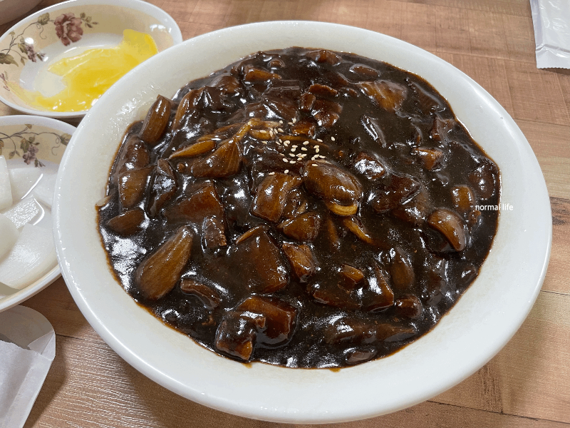 평소 맛보던 짜장면 면발보다는 조금 더 굵은 면발이었고 부드럽고 고소한 면발이 매력적이었다. 짜장소스는 단맛과 짠맛이 덜한 자극적이지 않은 고소한 맛이 특징인 옛날스타일 짜장면이었다.