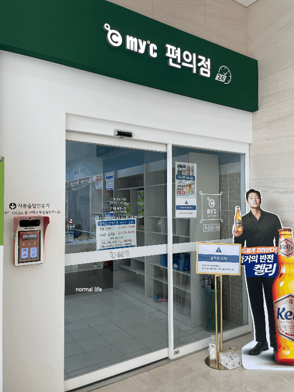 24 사간 이용이 가능한 마이도시 편의점이 1층에 위치하고 있다. 9:00-23:30은 유인운영, 야간에는 무인으로 운영하여 술, 담배 구입이 불가능하다.