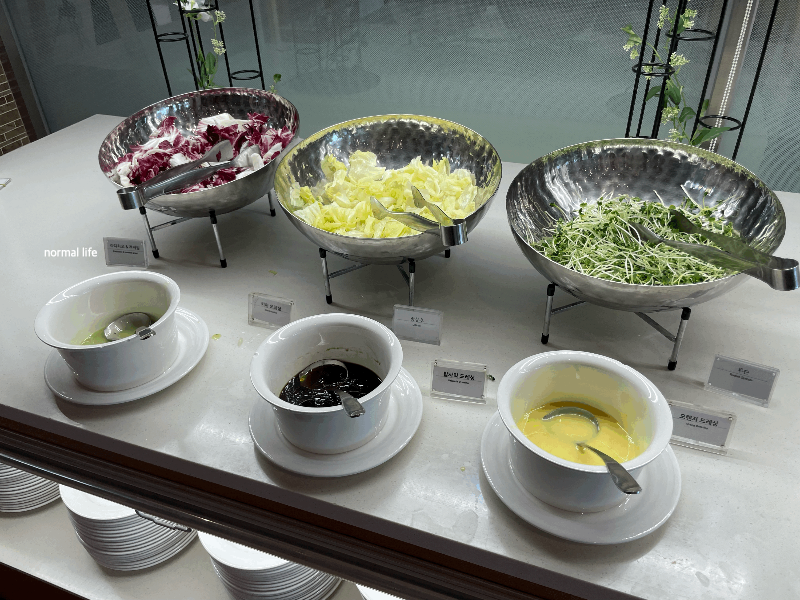 입맛을 깨우는 신선한 샐러드와 살라미, 치즈, 단호박샐러드, 멕시칸푸실리샐러드, ABC샐러드로 싱그러운 조식을 맛볼 수 있다.