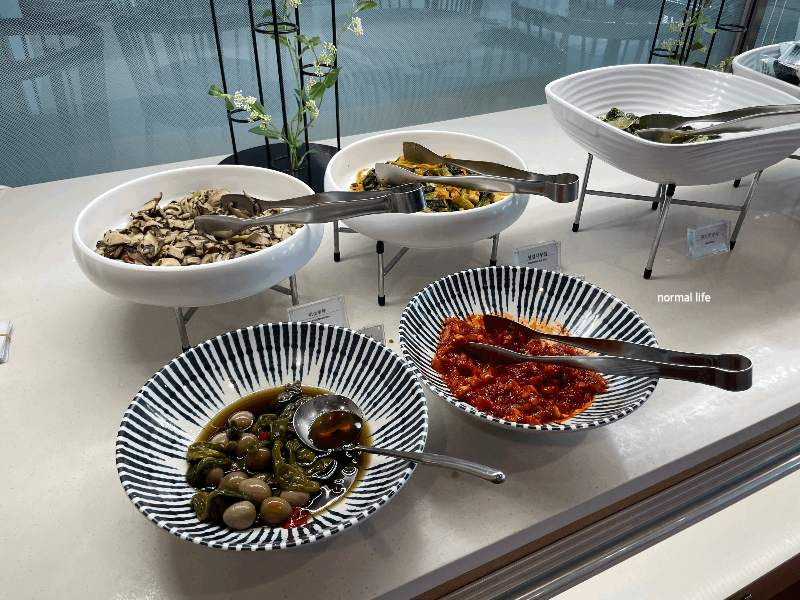 건강한 한 끼를 맛볼 수 있는 다양한 한식이 준비되어 있다. 흰밥과 잡곡밥, 배추김치, 깍두기, 버섯볶음, 청경채무침, 다시마부각, 꽈리고추 장조림, 오징어젓갈, 도시락김, 꼬마낫또, 황태해장국, 몽글 순두부가 준비되어 있어 든든한 아침을 맛볼 수 있다.