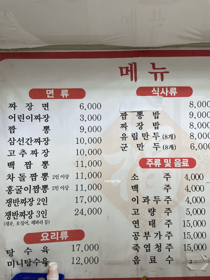 1인 1 메뉴 주문 원칙으로 짬뽕의 맵기 조절은 불가하다. 성지 사장님이 추천하는 메뉴는 #삼성간짜장 10,000원 #차돌짬뽕 (2인이상) 11,000원 #유림만두(8개) 8,000원이다.