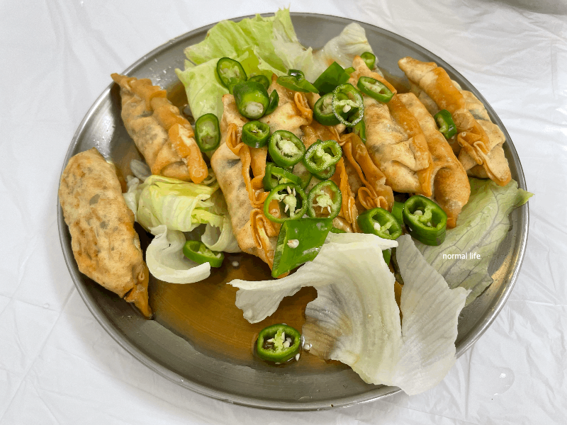 성지 매장 안으로 들어서니 테이블마다 모두 맛보고 있는 유림만두가 눈에 띄었다. 신선한 양배추와 고추가 올려진 군만두의 신선한 비주얼을 보고 우리도 유림만두를 주문하였다. 쯔유향이 나는 간장소스의 매콤한 고추, 아삭한 양배추를 바삭한 군만두와 함께 곁들이니 별미였다.