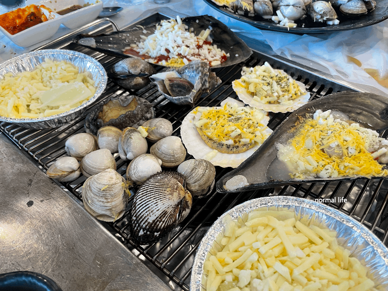 서해 바다에서 꼭 맛봐야 하는 조개구이도 주문하였다. 가리비, 키조개, 바지락, 꼬막, 소라, 전복을 맛볼 수 있는 조개구이 小 2인 60,000원이다.