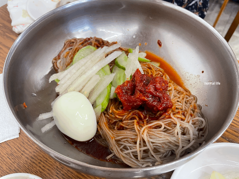 매콤 달콤한 양념장, 명태회, 쫄깃한 고구마전분면의 조화가 어우러진 함흥식 비빔냉면이다. 탄력 있는 면과 강한 양념장이 입맛을 당긴다. 얇고 쫄깃한 면발은 입안에서 끊어지지 않을 정도로 탄력 있었다.
