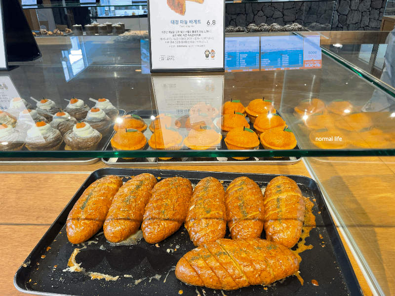 제주산 마늘을 듬뿍 담고 크림의 풍미 가득한 바삭 촉촉한 #대정마늘바게트 6,800원이다.
