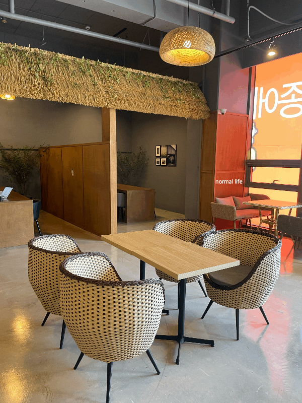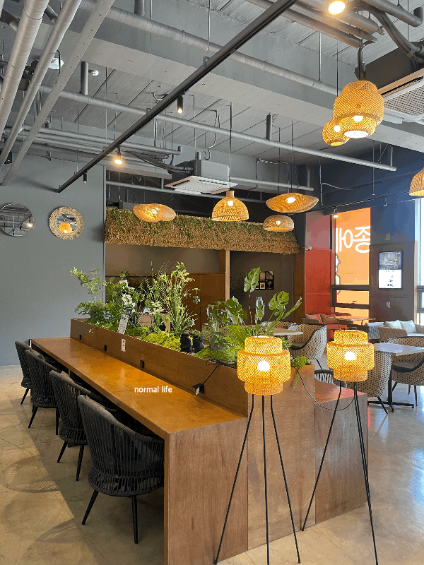 제주와 발리의 감성이 섞인 듯한 애월빵공장 세종점의 내부이다. 밖으로 보이는 돌담을 바라보니 여기가 제주인듯하다.