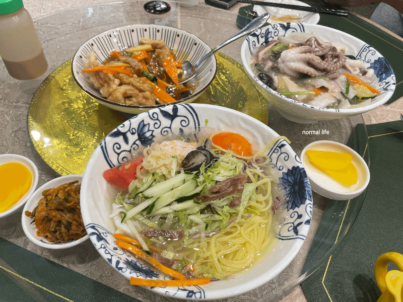 여름에만 맛볼 수 있는 계절메뉴 중국냉면, 담백한 맛과 신선한 해산물이 가득 들어간 삼선 울면, 촉촉하고 부드러운 탕수육 小를 주문하였다.