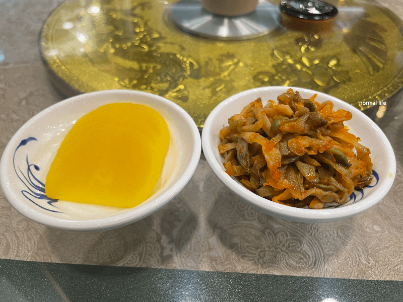 중국요리에 빠지면 섭섭한 단무지와 쨔샤이가 밑반찬으로 제공된다.